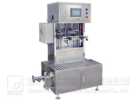 本機(jī)型為雙頭半自動中包裝食用油灌裝機(jī),采用德國西門子PLC控制,觸摸屏操作,變頻器調(diào)節(jié)雙速灌裝,先快后慢,不溢油,灌裝完畢油嘴自動回吸不滴油。具有配方功能,不同規(guī)格桶型對應(yīng)相應(yīng)配方,點(diǎn)擊相應(yīng)配方鍵即可換規(guī)格灌裝;具有一鍵校正功能,計量有誤差可自動一鍵校正,具有體積、質(zhì)量兩種計量方式。灌裝速度快,精度高,操作簡單快捷,適合10-25L中包裝餐飲油的定量灌裝。